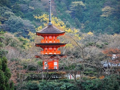 Kiymizu Dera je místem, které vypadá při každé návštěvě jinak. Na jaře zde kvetou růžové sakury a na podzim se zase okolní lesopark barví do pestrobarevného podzimního listí. Po prohlídce chrámového areálu je to pak už jen pár minut chůze starými uličkami plnými malebných krámků do čtvrti Gion.