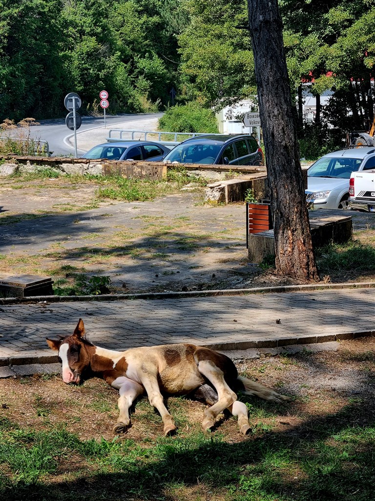 Vyjedeme na náhorní planiny tvořící centrum NP MAVROVO a krajinou podobnou mongolským stepím dojedeme skrze dvoutisícové hory až do osady Lazarpole. Krajina je zde vskutku dech beroucí. Nikde ani noha, pouze ty naše. No a taky ty psí…Toho jsem se trochu obávala. Příručky radí: zachovat klidnou hlavu, jet pomalu, případně slézt z kola a vyhnout se stádu. Na to už je pozdě a jsme v něm uvězněni. Pastevec zde chybí, pes hlídá sám. Nejdříve vypadá téměř přátelsky. Záhy už o něco méně. Stádem jsme sice projeli bez úhony, ale i tak se rozhodl prověřit naše sprinterské schopnosti. Po několika set metrech nás nakonec nechává žít. Uff. V další části hor potkáváme další 2 psy velikosti i tvaru menšího medvěda. Naštěstí mají svého pastevce, jsou to hotoví míliové a nevidí v nás nepřítele. Po krásném sjezdu do osady potkáváme vyprahlí fata morganu v podobě luxusní restaurace. V bříšku jako v pokojíčku, odtud se parádním sjezdíkem a náročným stoupáním přehoupneme přes hřeben a údolí do vesničky Janče, kde nám místňáci málem pokácí strom na hlavu (↔ 78 km, ↕ 1.890 m).