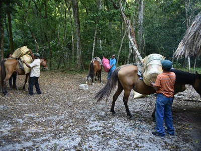 Do džungle nás bude doprovázet celý tým – průvodcovská skupina z vesnice postupně vykrystalizovala a soustředí - profesionála na faunu a floru pralesa, archeologa a znalce mayských ruin, učitele nesčetnými mýty opředené mayské historie, komunikačního důstojníka s účastníky výpravy, kuchaře… A protože v období sucha je v celém regionu nouze o vodu, doprovází nás i několik mul se zásobami a barely s vodou. José Chen, se kterým jsem se kdysi náhodou seznámil ve Flores, nám celý tým představuje. Všichni naši průvodci jsou vzrůstem malí, mají typické mayské rysy a jsou nesmírně přátelští a otevření. Vypadá to, že na výpravu se těší stejně jako my. Mnoho cestovatelů si s nimi na tenhle podnik zřejmě netroufne.