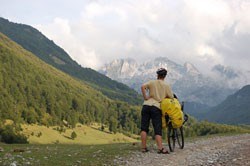 V srpnu 2006 stojíme na hraničním přechodu mezi Černou horou a Albánií a dva celníci si prohlíží naše pasy. Přijeli jsme sem po úzké asfaltové cestičce, která za závorou zatáčí mezi oplocená políčka. Po chvíli jsme propuštěni a ocitáme se ve vysněné „Zemi orlů". Krásný asfalt za zatáčkou končí a začíná kamení. První hodina je úděsná. Učíme se ovládat plně naložená ležatá kola na volných kamenech a urputně se snažíme vyjet každý kopec. Stejně urputně se však silnice snaží nás dostat ze sedel a poslat nás k zemi, což se jí také několikrát daří. Jenže jedna prohraná bitva neznamená prohranou válku a tak pokračujeme dále. S každým ujetým metrem se naše jízdní technika zlepšuje a na začátku stoupání do prvního albánského sedla už s našimi koly bez větších problémů tancujeme po kamenité cestě a tu a tam si můžeme dovolit se podívat po okolí a kochat se nespoutanou přírodou v okolí. Nic divočejšího jsem snad v Evropě ještě neviděl. Vápencové masivy v okolí by se možná daly přirovnat k italským Dolomitům, ale tady neuvidíte asfaltku, čtyřhvězdičkový hotel, ani ogoretexovaného horolezce směřujícího na ferátu. Jediné co vidíme je rozmlácená silnice pod koly, kamenné chajdaloupky postavené v příkrých svazích a staříka na oslovi. To vše ještě podtrhuje neuvěřitelnost tohoto místa.