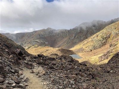 k vrcholu Pic de Coma Pedrosa a odtud zpět k jezeru Estany Negre, odkud se vrací stejnou cestou do Arinsalu (14,2 km, ↑1424 m, ↓1424 m)