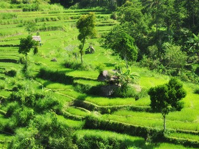Dopolední pěší výlet v okolí malebné horské vesničky Munduk. Procházka po svazích třetí nejvyšší hory ostrova, GUNUNG BATUKAU. Tropický prales, plantáže hřebíčků a skořice, hluboké soutěsky a vodopády. Později odpoledne prohlídka jezerního chrámu Ulun Danu Bratan ležícího na břehu Bratanského jezera a přes překrásné rýžové terasy JATILUWIH se přesuneme do malebného horského městečka Ubud, kde se ubytujeme na další 3 noci.