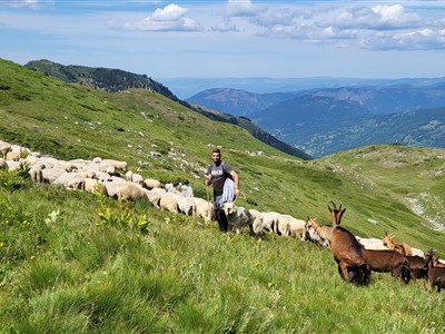 Čeká nás první rozehřívací túra. Ze sedla Prevalac vystoupáme kolem mnoha salaší, vodopádů a horských jezer až na hlavní hřeben pohoří Šar planina na vrchol Konjuška (2528 m, ↔ 12 km, ↑↓ 1000 m).