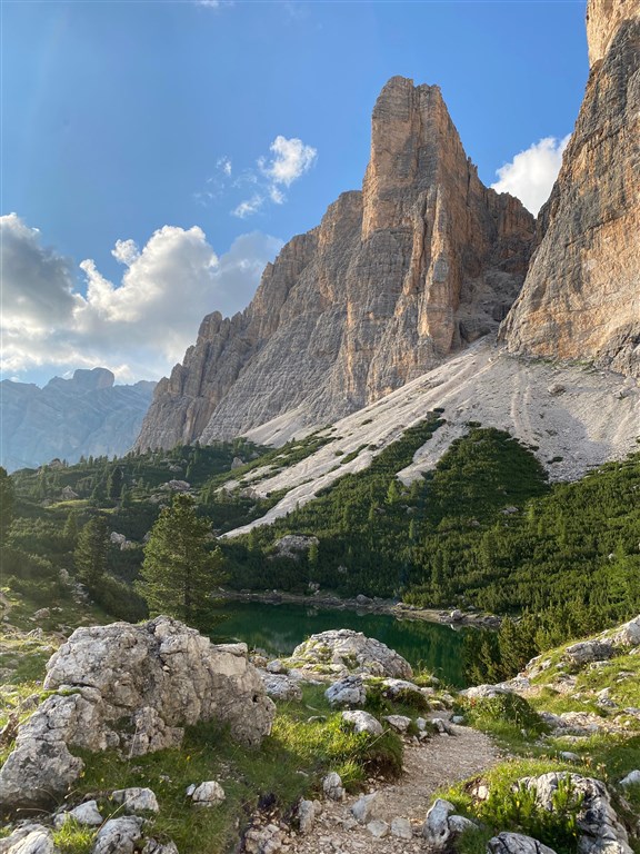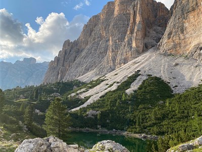 Čtvrtý den začneme svěže a aktivně krátkou ranní „rozcvičkou“ na zajištěné ferratě Merlona, která nás probudí, naladí na horské tempo a odmění krásnými výhledy do okolních údolí. Poté budeme pokračovat dále po scénických stezkách mezi skalními věžemi a ledovcovými kotli, až se před námi otevře pohled na legendární tyrkysové jezero Sorapiss. Večer nás čeká nocleh přímo u jeho břehů, kde si v klidu vychutnáme ticho hor, měnící se barvy vody a jedinečnou atmosféru jednoho z nejkouzelnějších míst celých Dolomit.
