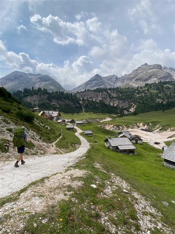 Pátý den nás čeká jedna z nejnáročnějších a zároveň nejdivočejších etap celé Alta Via 4. Hned nad tyrkysovým jezerem Sorapìss nastoupíme na legendární ferratu Vandelli, která vede po impozantní skalní stěně a prověří naši jistotu v exponovaném terénu. Po jejím dokončení pokračujeme sestupem k osamělému bivaku Comici, kde v tichu divoké přírody často zahlédneme kamzíky. Odtud nás čeká dlouhý a vzdušný traverz po Sentiero Minazio podél masivu Sorapìss, s minimem vody a civilizace, což dodává dni opravdový horský charakter. Přes Forcella Grande s výhledem na majestátní Antelao nakonec sestoupíme náročným terénem k pohodlnému Rifugio San Marco, kde nás čeká zasloužený odpočinek po intenzivním dni v srdci Dolomit.