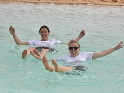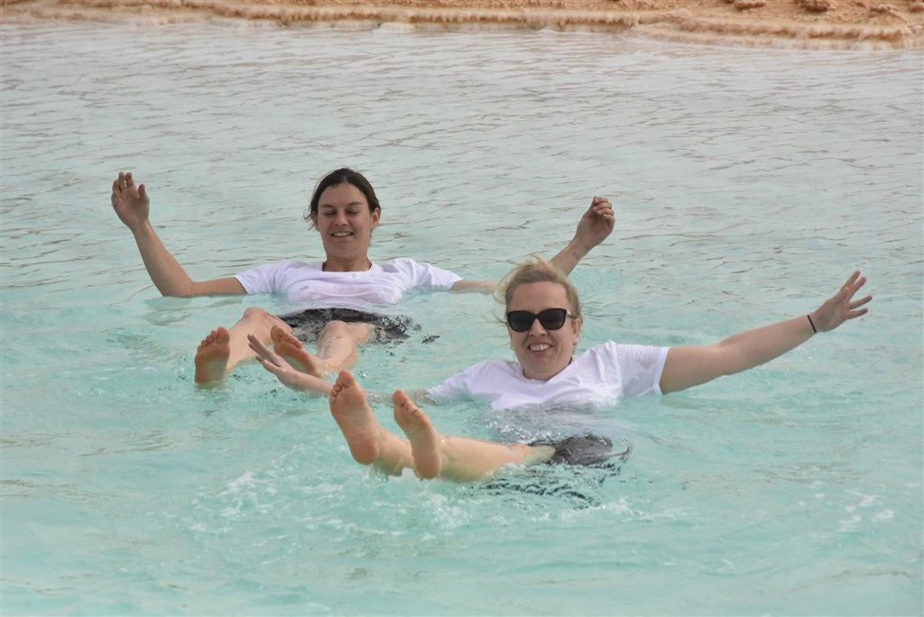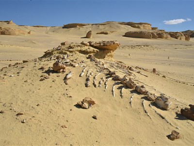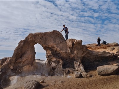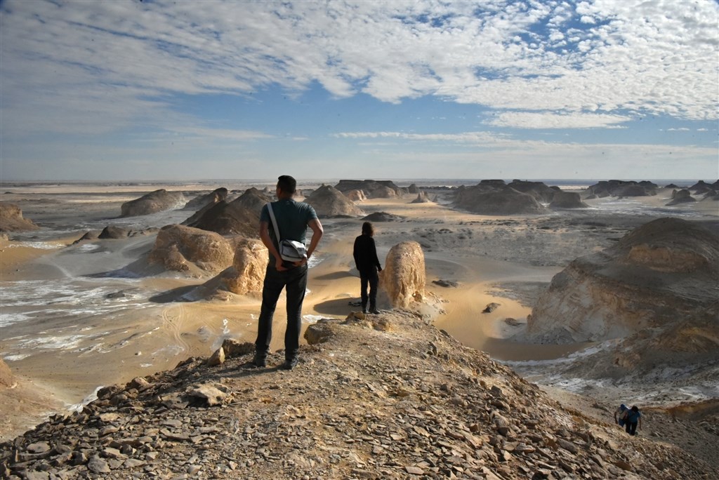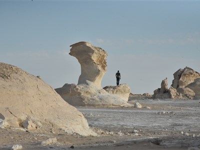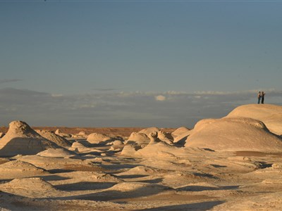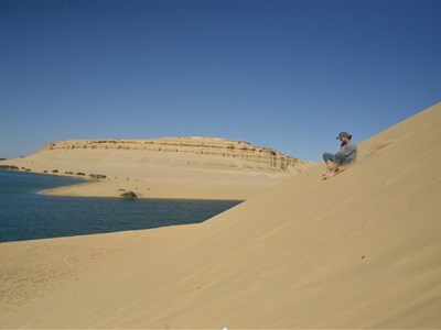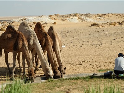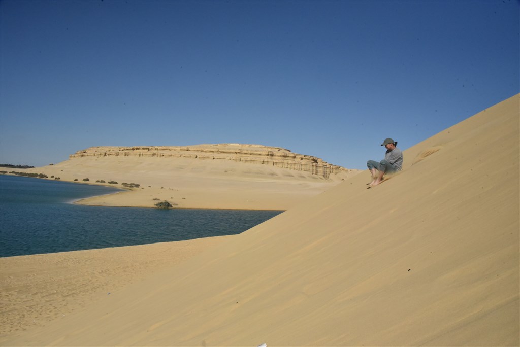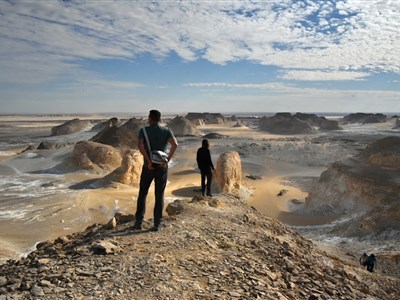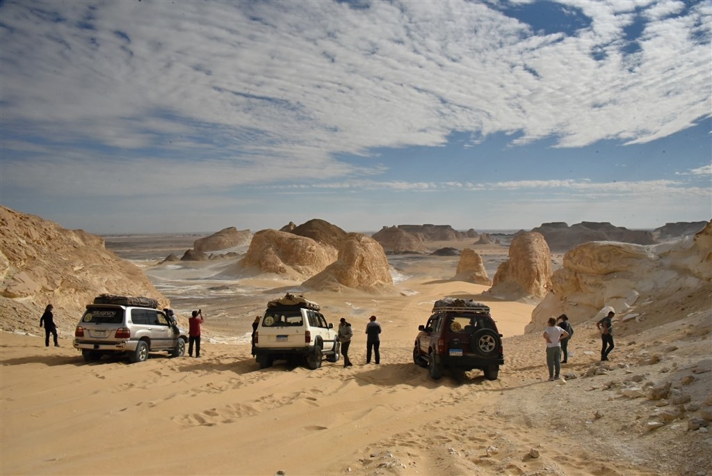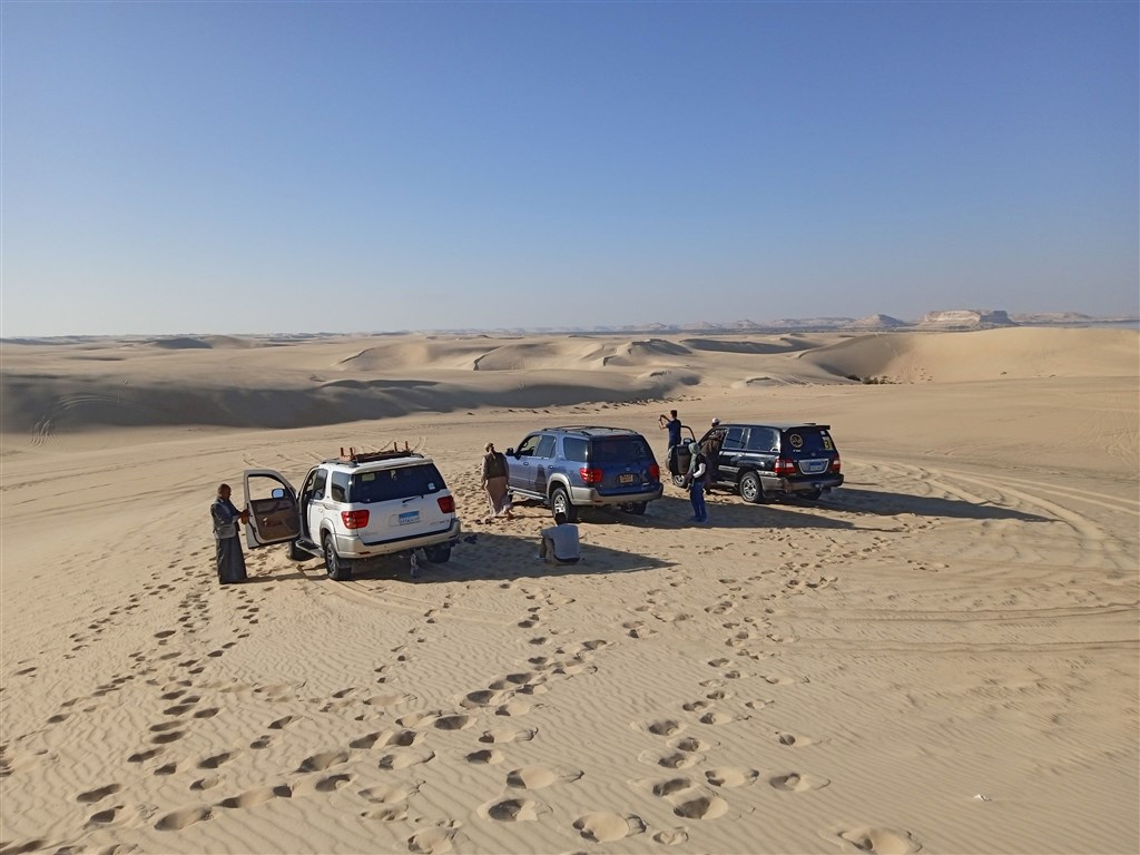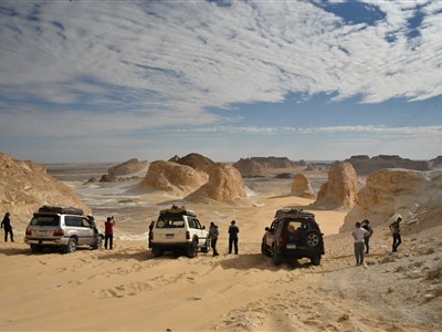 Čeká nás celodenní výlet do pouště. Ztratíme se v nekonečných písečných dunách „Velkého písečného oceánu“, který se táhne až za hranice do Libye. Uvidíme malebné křídové útvary, fosilie jako v muzeu pod širým nebem, zastavíme v palmové oáze, jak z dobrodružných románu a vyjedeme terénními auty vysoké písečné duny, které si posléze sjedeme na snowbordu. Den zakončíme sledováním západu slunce a tradičním beduínským čajem.