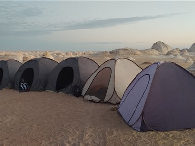 Let z Prahy do Egypta, s předpokládaným příletem odpoledne. Přesun z letiště do centra na autobus nádraží. Celonoční přesun (9 hod.) autobusem na západ k Lybijským hranicím.