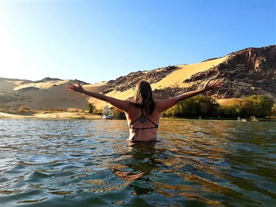 Ráno dorazíme do nejodlehlejší egyptské oázy Siwa. Hned se půjdeme projít (max. 10 km) pěšky po oáze. Vystoupáme na vyhlídkový vrchol Darkur s římskými hrobkami a dalekým výhledem. Prach cesty smyjeme v jednom z četných pramenů, díky kterým oáza vznikla. A přes nekonečné palmové háje dorazíme až na naše ubytování v tradičním pouštním domě.