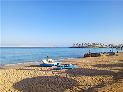 Přejezd minibusem k Rudému moři do Hurghády a odpočinek na plážích Rudého moře. Staré centrum Hurghády nabízí celý sortiment řemeslných výrobků, se kterými jsme se po cestě potkali, nemluvě o pestré paletě čerstvého ovoce, v prosinci tak atraktivního. Báječná příležitost odbýt vánoční nákupy