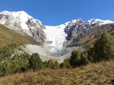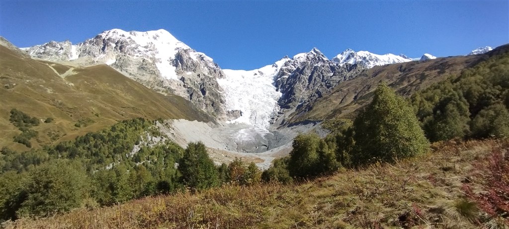 Dnes se z Adiši vydáme údolím řeky Adišchala až téměř k patě stejnojmenného ledovce, pak překonáme náročný brod a vystoupáme do sedla Chkhutnieri (2.735 m). Opět se nám otevřou krásné výhledy zpět na údolí odkud jsme přišli i na údolí, do kterého budeme pokračovat. Za zády nám zůstanou ledovce Kchalde a nad nimi hřeben Bezeginské stěny. Projdeme vesnicí Kchalde, kterou v době první pacifikace Gruzie téměř zničili carská vojska a dostaneme se do Iprari. (↔ 17km, ↑ 800 m)