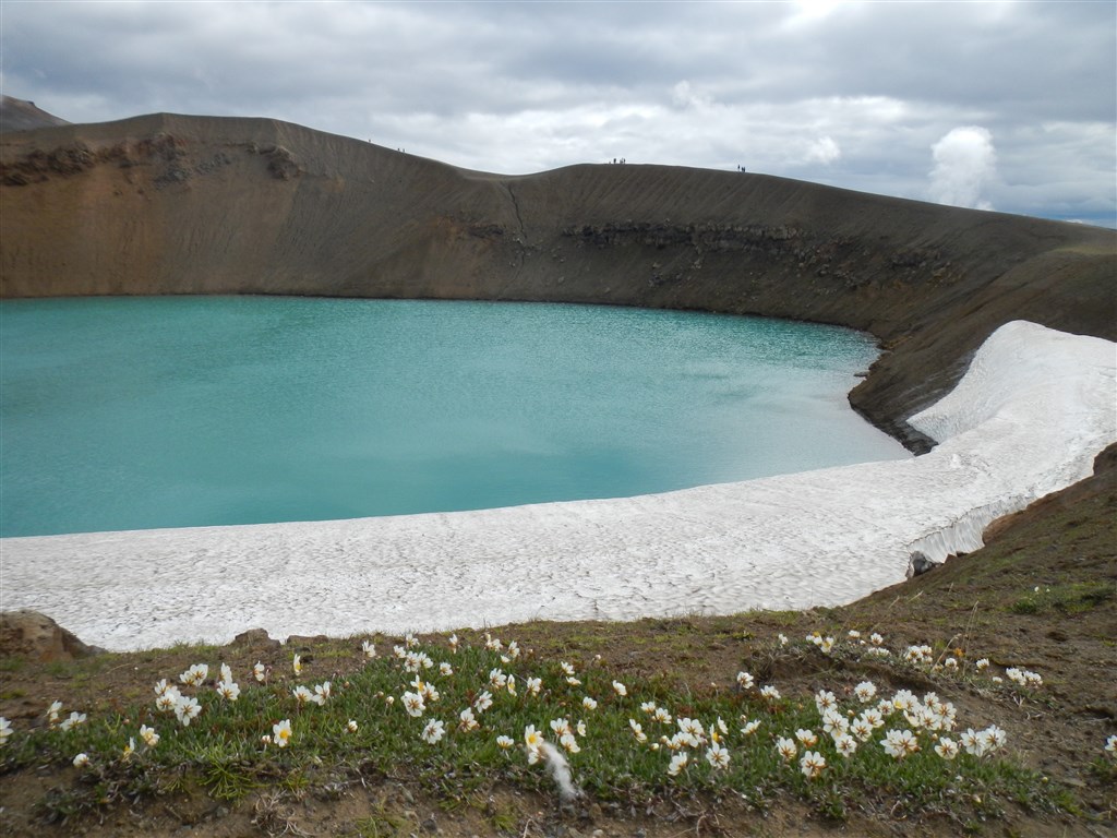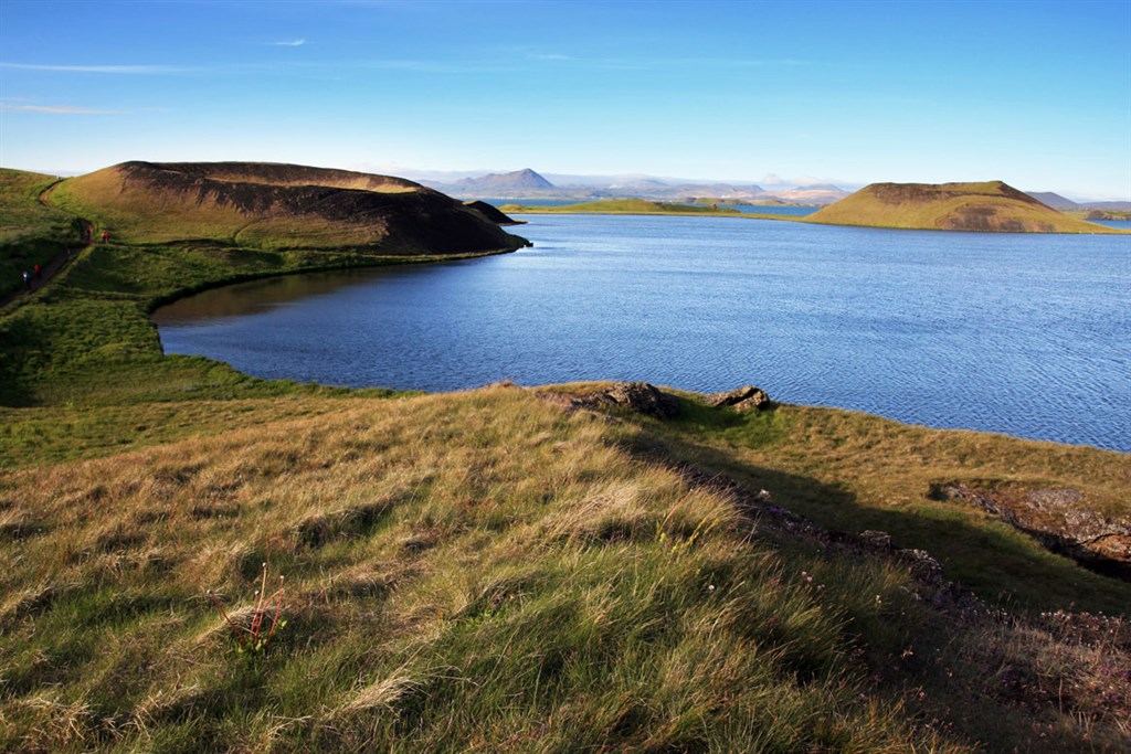 Den zahájíme návštěvou skanzenu drnových stavení Glaumbær. Areál nabízí též historickou kavárničku Áskaffi. Poté se vydáme kolem vodopádu Goðafoss, dále přes městečko Akureyri, kde navštívíme zdejší unikátní botanickou zahradu. Nakonec dojedeme až k jezeru Mývatn, kde zůstaneme následující dvě noci. Okolí jezera Mývatn je plné atraktivních útvarů sopečného původu. Vydáme se na trek skrz lávové pole Dimmuborgir, po okraji obejdeme majestátní kráter Hverfjall, nahlédneme do malé lávové jeskyně Grjótagjá s horkým pramenem a po svých dojdeme zpět, až do kempu. Prozkoumáme části vulkanického systému Krafla, jako je sirné pole Hverir na úpatí aktivní sopky Námafjall, vulkán Leirhnjúkur a obrovské lávové pole kolem něj, nebo kráter Víti. Kdo bude mít chuť, může ve večerních hodinách zrelaxovat v mléčně modré vodě nedalekých termálních lázních Jarðböðin. (↔ 19 km, ↑ 250 m, ↓ 260 m)
