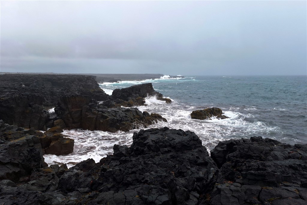 Drsné pobřeží vulkanicky aktivního poloostrova Reykjanes.