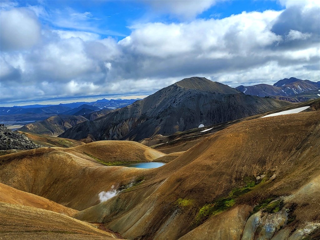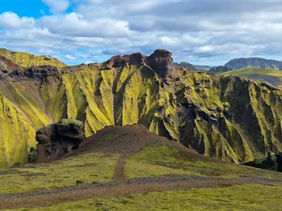 Ráno se přesuneme do vnitrozemí, kde se krajina z černé lávy a zelených mechů zlomí v barevnou pohádku. Landmannalaugar je místo, které hraje naprosto všemi barvami - červené svahy Brennisteinsaldy, modravý Bláhnúkur a černé lávové pole Laugahraun. Po treku nám odměnou bude koupání v přírodním horkém potůčku, který je tak akorát na unavené svaly.