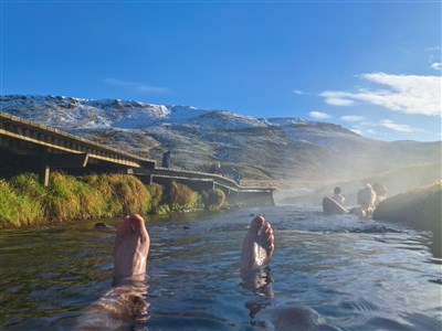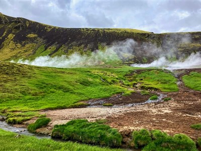 Po třech dnech nabitého cestování si dopřejeme trochu islandského wellness. Vydáme se do údolí Reykjadalur, kde mezi kouřícími fumarolami teče řeka tak teplá, že se v ní dá koupat. Piknik v horké řece je zážitek, který se těžko napodobuje.