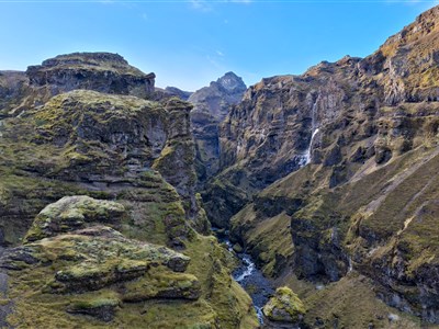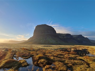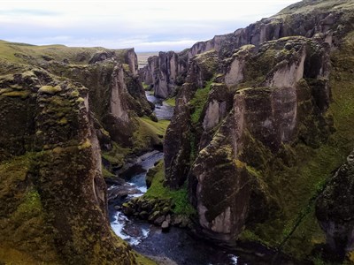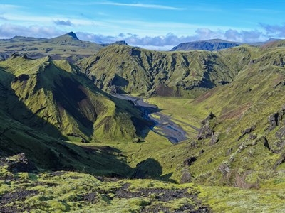 Den začneme v pohádkovém kaňonu Fjaðrárgljúfur a přes nekonečné mechem porostlé lávové pláně zamíříme do národního parku Vatnajökull. Tady nás čeká pohled na mohutný splaz Skaftafellsjökull, jeden z majestátních výběžků největšího evropského ledovce.