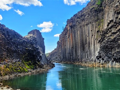 Cestou na sever se zastavíme u kaňonu Stuðlagil, kde z tyrkysové hladiny vyrůstají vysoké čedičové stěny všech možných tvarů. Poté vyrazíme k vodopádu Dettifoss, jehož ohlušující hřmot lze dokonce i cítit. A v oblasti Hljóðaklettar si nakonec vyzkoušíme ozvěnu mezi bizarními skalními útvary, které působí jako kulisy z jiné planety.