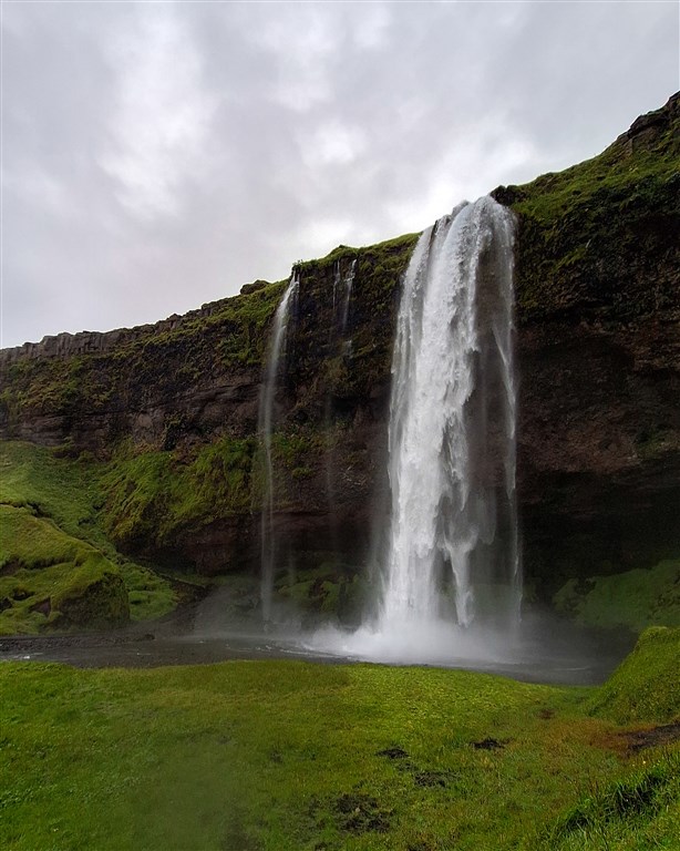 Při průchodu za vodním závojem vodopádemu Seljalandsfoss nezůstane nikdo suchý. Foto: Lenka Pečánková.