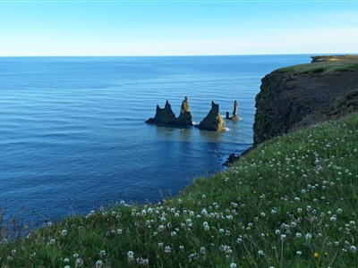 Den ve znamení vodopádů. Seljalandsfoss nás nechá projít přímo za svou vodní oponou, o něco dál hučí majestátní Skógafoss, kde se do mlhy často maluje duha. Na mysu Dyrhólaey nám budou nad hlavou kroužit papuchalci a pak už zamíříme na jednu z nejznámějších pláží světa s černým pískem a čedičovými útesy.