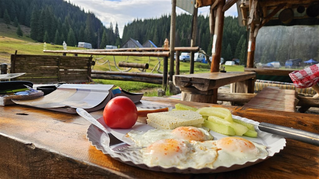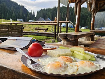 V ceně zájezdu jsou zahrnuty snídaně a večeře, které nám vždy ráno a večer připraví přímo na chatě. Každý večer ochutnáme některý z typických rumunských pokrmů, jako například: ciorba - hustá zeleninová nebo masová polévkamici [miči]– grilované válečky z mletého masa podobné čevapčičisarmale – tradiční pokrm, který se skládá ze zelných listů plněných směsí mletého masa, rýže, cibule a koření. K němu se podává také slavná mămăligă - kukuřičná kaše podobná italské polentě a balkánskému kačamaku, která byla původně jídlem chudých rolníků, často nahrazující chleba.Obědy a svačiny v ceně zahrnuty nejsou. V neděli bude možné si oběd koupit na tábořišti Glăvoi, kde je několik stánků s výborným občerstvením, na úterý a středu je vhodné se vybavit jídlem, které je možné si vzít s sebou na túru. Pečivo bude možné koupit i v sobotu ve městě Oradea.