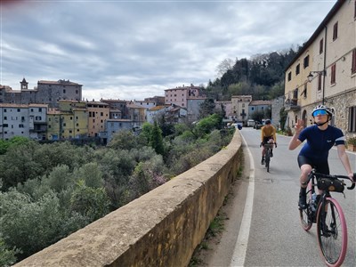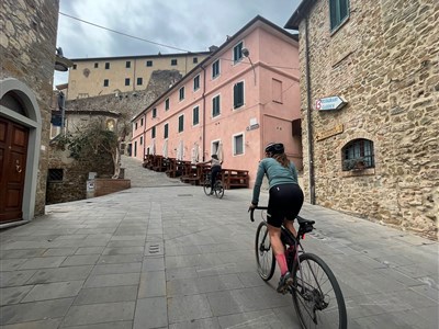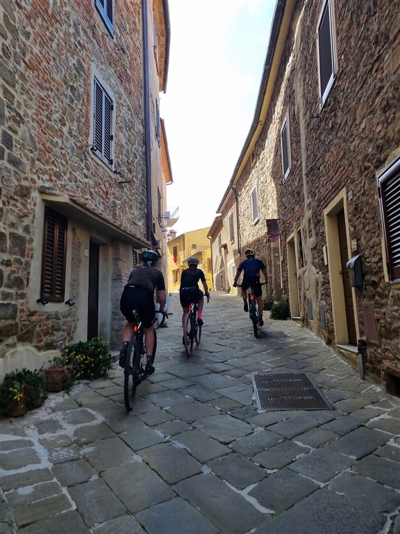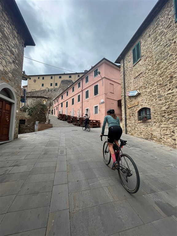 Třetí den přináší dvě poctivá stoupání a zasloužené výhledy. Dopoledne míříme do kopců nad Scarlinem, kde se z úzkých cest otevírají krásné výhledy do krajiny. Po sjezdu pokračujeme klidnými silnicemi a přes zahrádkářské oblasti míříme k druhému výjezdu dne – výživnému, ale s o to lepší odměnou. Campiglia Marittima je historická perla s atmosférou ospalé siesty a výbornou kávou. Závěr etapy vede po pobřežní cyklotrase až do Follonicy, kde si dáváme čas na kávu, aperol nebo jen pohodu u moře. Přesně ten typ dne, kdy se střídá aktivita, výhledy i pohoda ve stylu nejlepší sport je kolo, kafe a dort.🛣️ 73- km | ⬆️ 692 m |