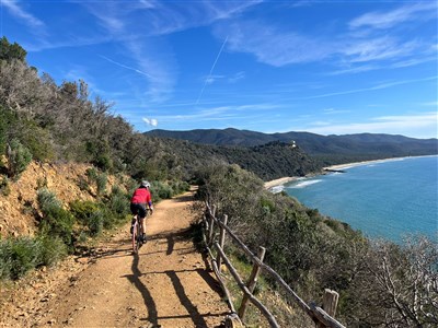 Zahajovací etapa nás zavede k pobřeží Tyrhénského moře směrem na městečko Punta Ala. Trasa kombinuje asfalt, šotolinu i lehký trail a přestože jde o první den v sedle, nuda rozhodně nebude. Za námahu nás ale odmění krásné výhledy na ostrov Elba, minimum lidí na cestě a návrat se západem slunce zpět do Scarlinna. Ideální úvod do toskánského terénu.🛣️ 60 km | ⬆️ 539 m |