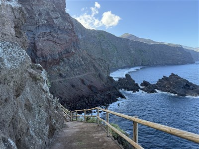 Severní pobřeží po GR130 (9km, 690m nahoru, 723m dolů).Přechod jedné z nejodlehlejších částí ostrova. Z Don Pedra se vydáme po staré obchodní stezce do Franceses. Čeká nás nádherné pobřeží se strmými útesy, zařízlými kaňony a částečně opuštěné vesnice s autentickou atmosférou. Přestože je výlet kratší, cesta divokou krajinou se strmými svahy nám zabere většinu dne.