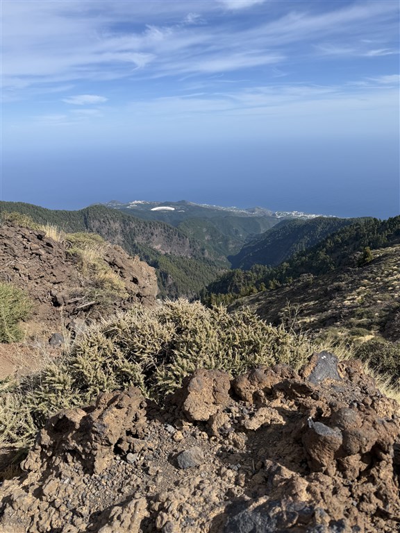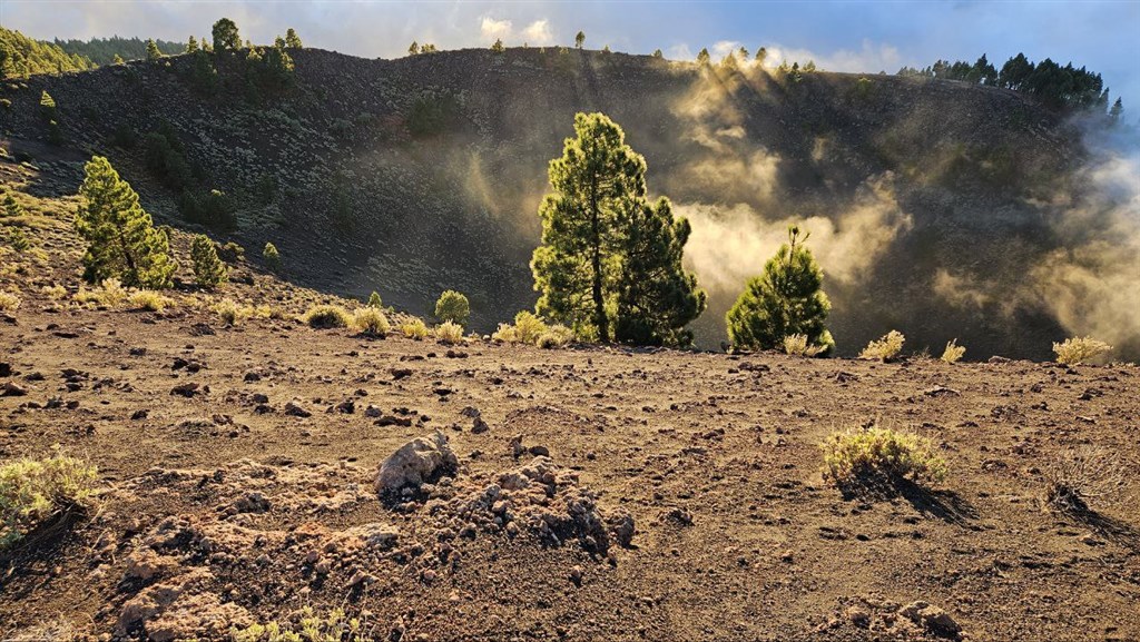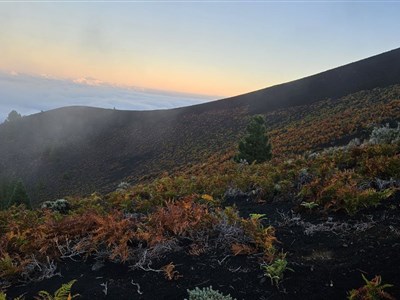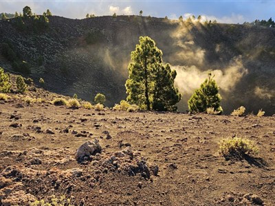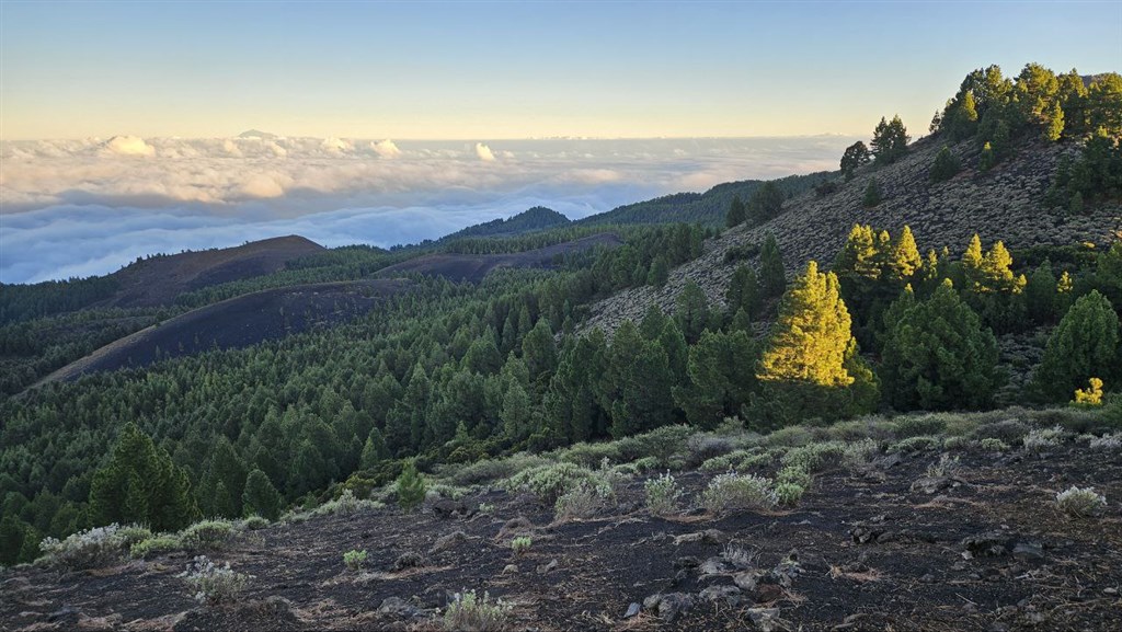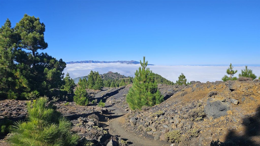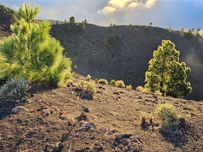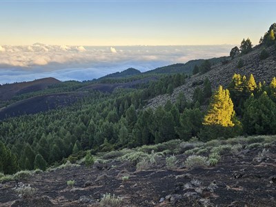 Cesta vulkánů (17 km, 547m nahoru, 1285m dolů)Pověstná hřebenová trasa středem ostrova mezi řadou kráterů a lávových polí. Po většinu cesty se otevírají výhledy na obě pobřeží La Palmy. Krajina je mimořádně pestrá se sopečnými kužely a popelovými svahy. Projdeme po ní 17 km a sestup zakončíme v malé vesničce Los Canarios. Večer si užijeme západ slunce nad oceánem na pláži s černým pískem.