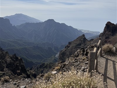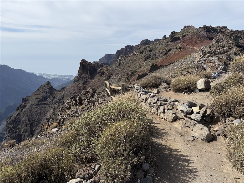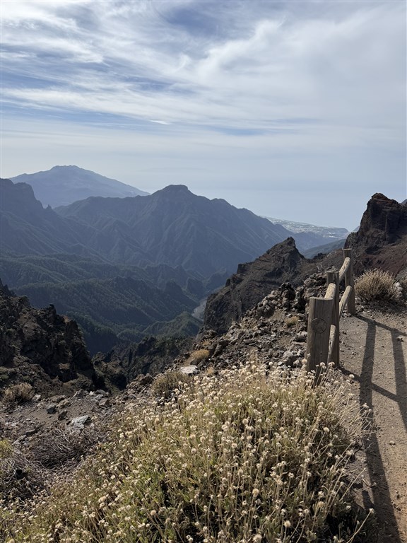 Vrchol Roque de los Muchachos a obvod kráteru (15,4 km, 456m nahoru, 734m dolů).Dnes vystoupáme na nejvyšší bod ostrova, Roque de los Muchachos (2 426 m). Odtud se vydáme po obvodu velkého kráteru s výhledy na obě strany ostrova, hluboká propadlá údolí i skalnaté hřebeny. Vystoupáme i na řadu dalších vrcholků jako Pico de la Cruz a Pico de la Nieve a uvidíme jedny z nejvýznamějších observatoří pro pozorování hvězd na světě.