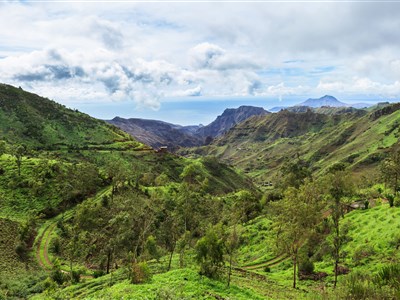 Turistika středem ostrova Santiago v přírodním parku Santo António a túra s výstupem na Pico d’Antónia (1394 m) – nejvyšší horou ostrova. Po cestě navštívíme městečko Sao Domingos a dílny pro výrobu tradičních ručně vyráběných kapverdských produktů. (cca ↔ 8 km)