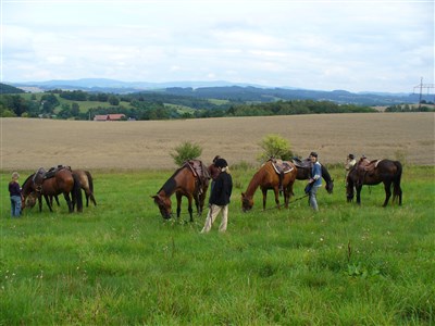 Na začátku kurzu vám vybereme koňského parťáka z našeho stáda na míru, s ním budete celé tři dny pracovat i jezdit. Třídenní kurz komunikace s koněm ze země i ze sedla je vhodný pro všechny, kteří chtějí začít s koněm úplně, nebo už s koněm pracovali, ale touží objevit kouzlo komunikace a spolupráce s koněm.Během kurzu si vysvětlíme jakým způsobem komunikovat s koněm tak, aby jsme byli pro něj srozumitelní, probereme jak koně požádat o spolupráci, jak si laskavě, ale důrazně pohlídat své hranice a zároveň jak ctít i hranice koně. Vysvětlíme jak komunikují koně spolu ve stádě a jak vnímají signály našeho těla, které často používáme nevědomě. Kůň čte každý pohyb našeho těla a podle toho reaguje a tak často dochází k omylům a vzájemnému nepochopení se, neboť si většinou ani neuvědomujeme jaké pohyby bezděčně děláme. Koně jsou velice vnímaví a tak se budeme učit cestu jemnosti a přesto srozumitelnosti pro koně. Naučíme vás základy práce ze země, na kterých se pak staví komunikace ze sedla. Komunikace a smysluplná práce ze země jsou základem srozumitelné komunikace s koněm. Navázáním vzájemné spolupráce a různými hrami vytvoříme základy vztahu s koněm, jeho zájem o nám a potřebu nechat se námi vést, aneb jak si založit vztah na dobrovolnosti. Každý den strávíme část prací ze země, ale i jízdou, vyjížďkou v sedle, nebo dle naladění skupiny i bez.