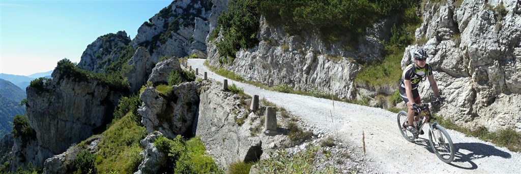Od jezera Ledro se přehoupneme přes Passo Nota (1.198 m) po staré vojenské stezce do Vesia a potom stoupání údolím St. Michelle do sedla Passo di Tremalzo (1.694 m). Za odměnu nekonečný sjezd k Lago di Ledro ( ↔ 62 km, ↑ 2.100 m). Při další kultovní etapě si vyjedeme pro daleké výhledy z Rif. Pernici ( ↔ 40 km, ↑ 2.000 m) s úžasnými výhledy na Rivu del Garda i jezero.
