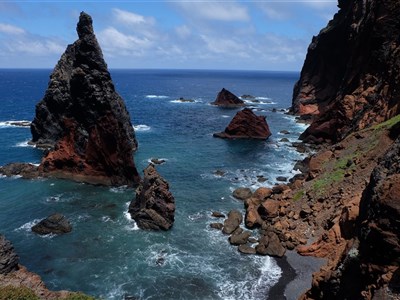 Celodenní túra po divokém skalnatém severovýchodním pobřeží (↔ 18 km, ↕ 500 m), část trasy vede přímo po hraně vysokých útesů spadajících rovnou do oceánu. Túra je završena návštěvou městečka PORTO DA CRUZ s možností koupání v Atlantiku a exkurzí v unikátní staré fabrice na výrobu třtinového rumu s ochutnávkou.