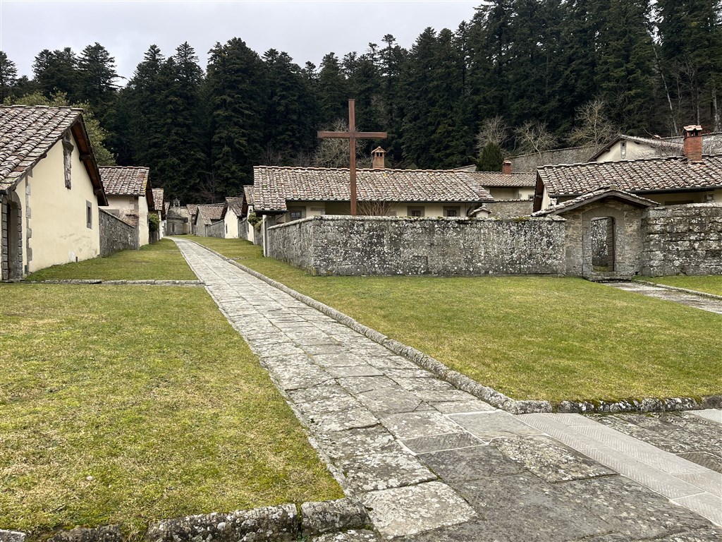Pokračovat budeme dále na západ. Civilizace bude ubývat a lesy zhoustnou, až nás pěšina dovede ke klášteru Camaldoli, místu obývaném benediktiny s tajuplnou atmosférou. Na chvíli se zastavíme a budeme pokračovat až do Badia Prataglia, kde složíme hlavu.