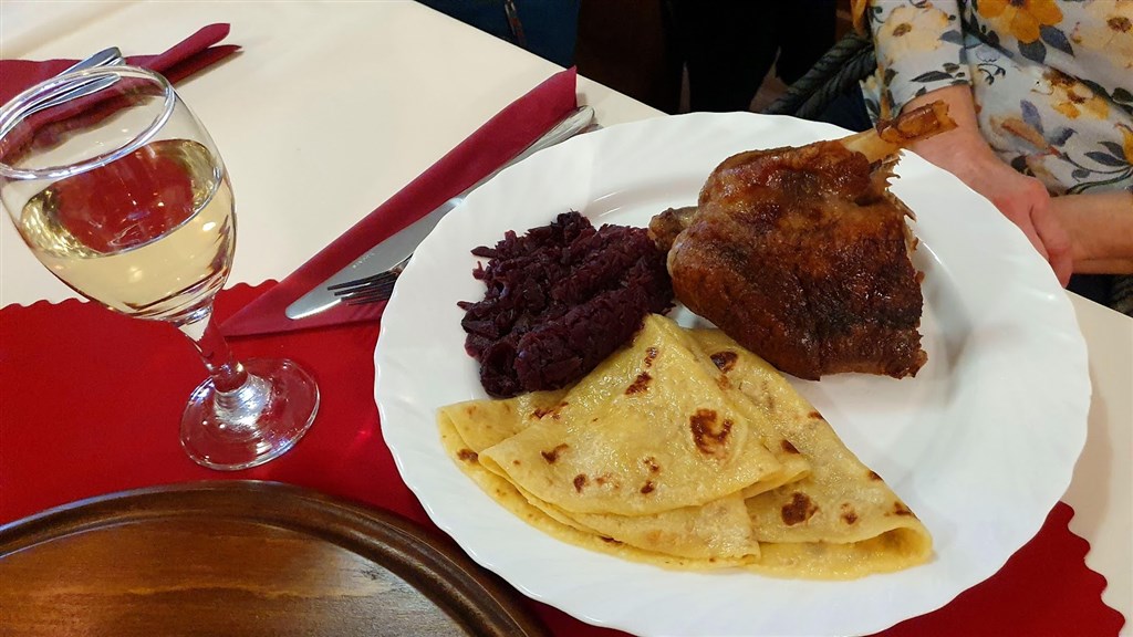 Díky nákladům na chov i poměrně pracné přípravě všech husích komodit (pečená husa, sádlo, výpeček a lokše připravované ručně válením těsta z vařených brambor) je cena „husaciny“ poměrně vysoká a přijde na hlavu na cca 16 – 20 EUR. Naši objednávku budeme muset nahlásit den dopředu, což dává prostor si objednat třeba jen maštěné lokše (cca 1 EUR/ks) nebo lokše s výpečkem (cca 2.5 EUR/ks) nebo jen tak posedět s ostatními cpáči při kafíčku.