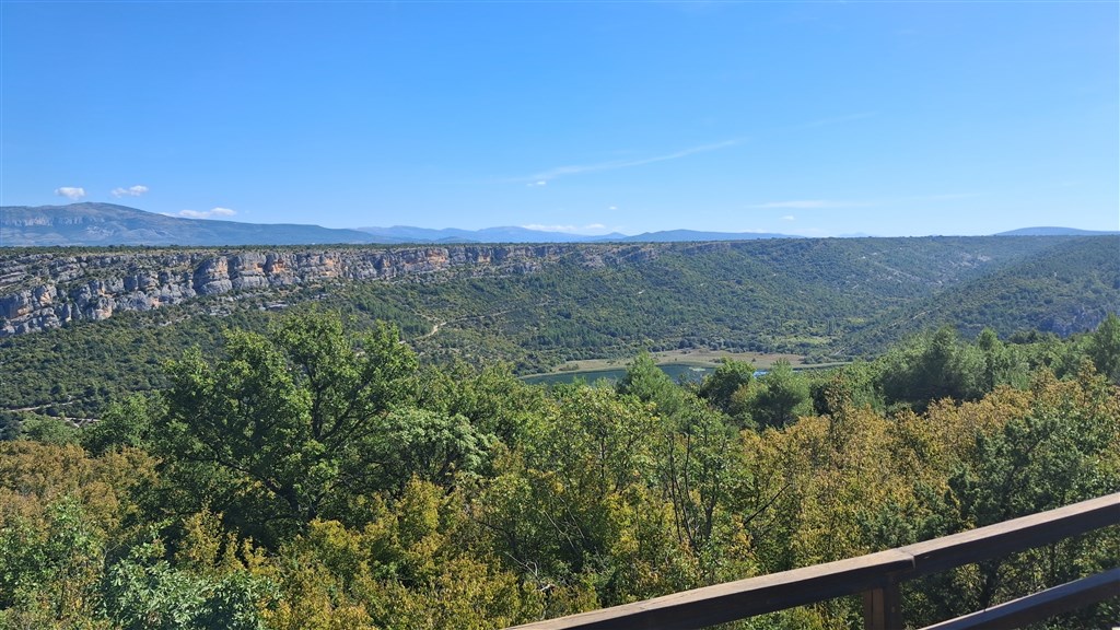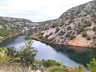Projížďka přes opuštěné vnitrozemní vesničky do údolími řek Krupa a Zrmanja. Koupačka ve vodopádu Berberov Buk (↔ 25-45 km ↑ 400-600 m ↓ 400-1000 m, 0-8 km šotoliny).