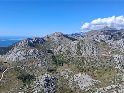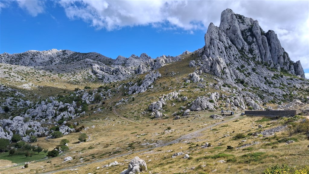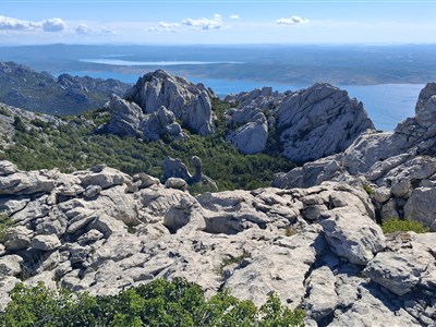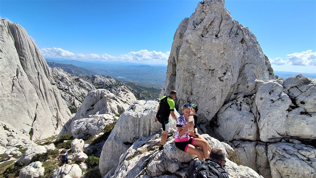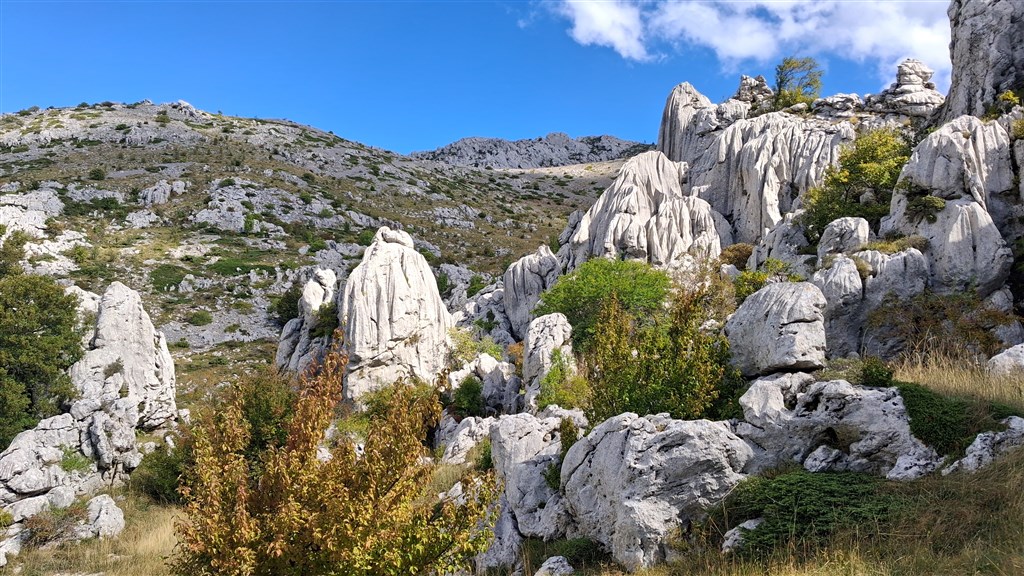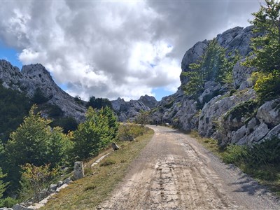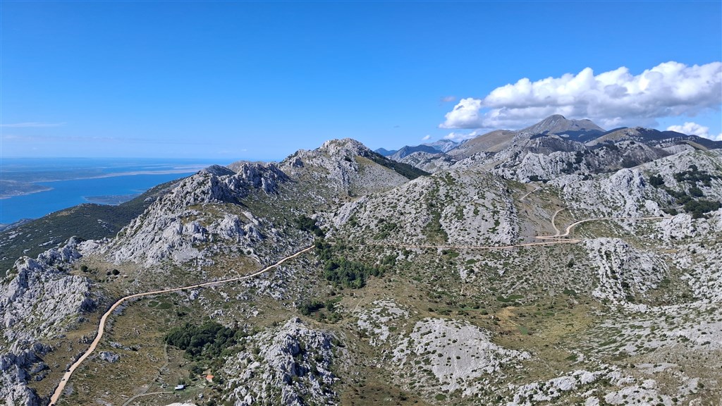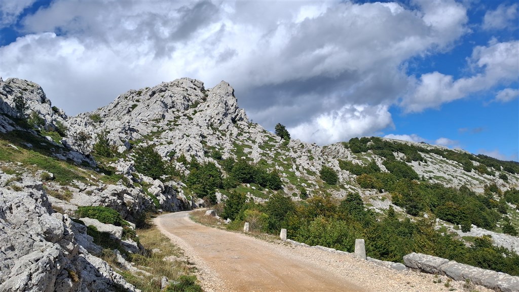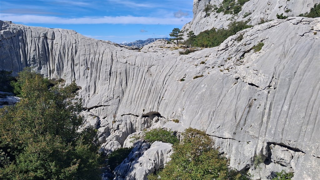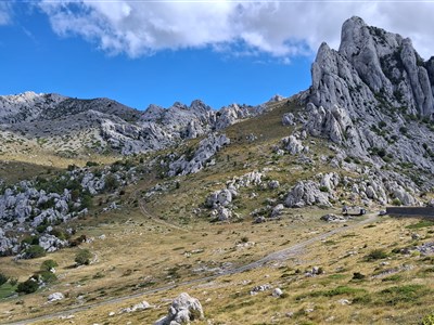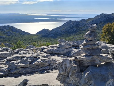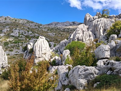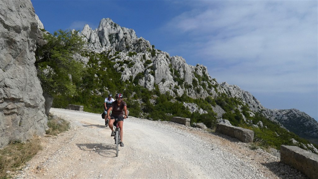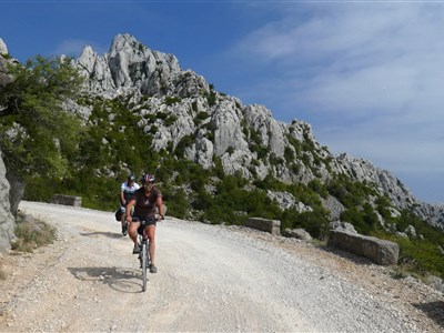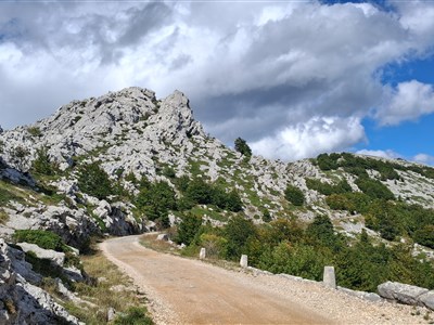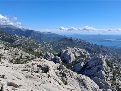 Královská etapa v jižní části Velebitu. Famózní skalní útvary Tulove Grede, kamenné mohyly N'šoči a Inčučuny. Dramatická vyhlídka na řeku Zrmanju neboli mayovské Pueblo na Rio Pecos. (↔ 35-55 km ↑ 600 m ↓ 1100 m, 20 km šotoliny)