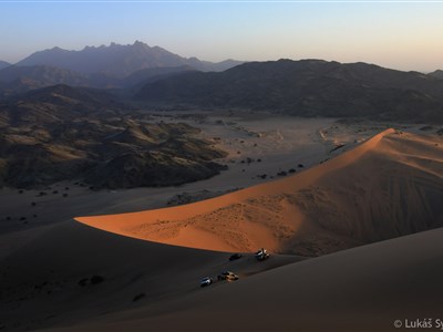 Navštívíme stará nádraží a reznoucí vlaky Hedžazské železnice, která za dob Osmanské říše pár let spojovala Damašek s Medínou. Arabské povstání během 1. světové války však již nepřežila. Železnice kopírovala prastarou karavanní poutní trasu do Mekky, kterou dodnes připomíná řada bytelných osmanských pevností. Spustíme se z Hedžazské náhorní plošiny směrem k Rudému moři, kde off-road prozkoumáme písečné duny, které magicky vystupující z pobřežní pouště na pozadí rozeklaných hor.