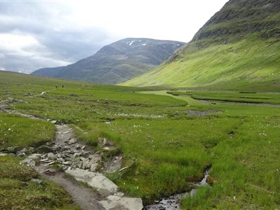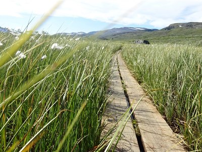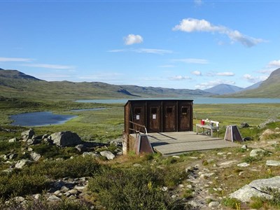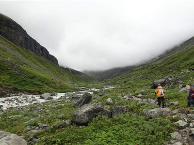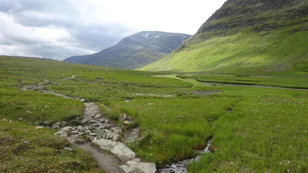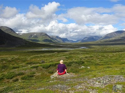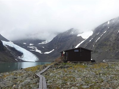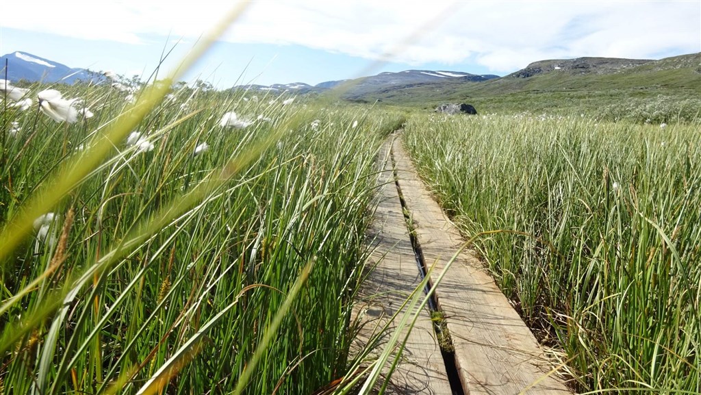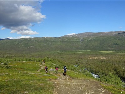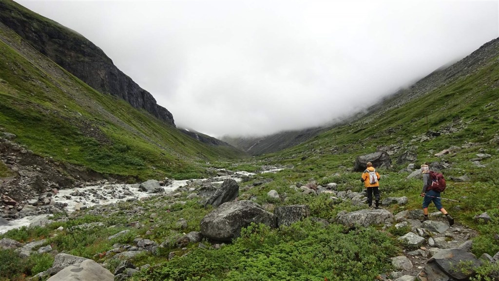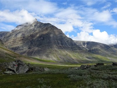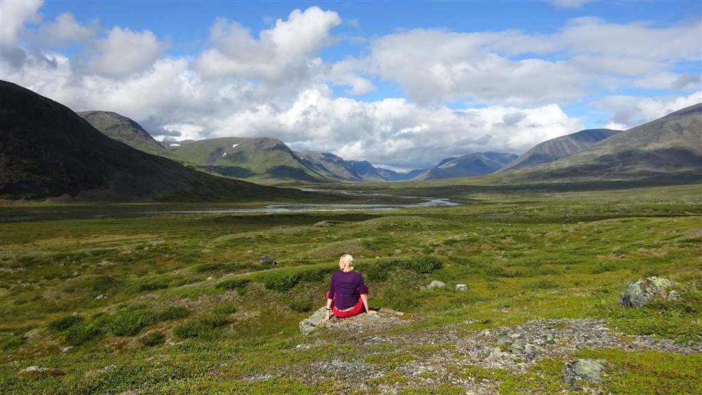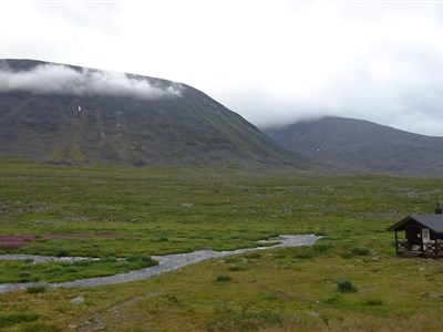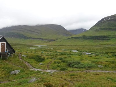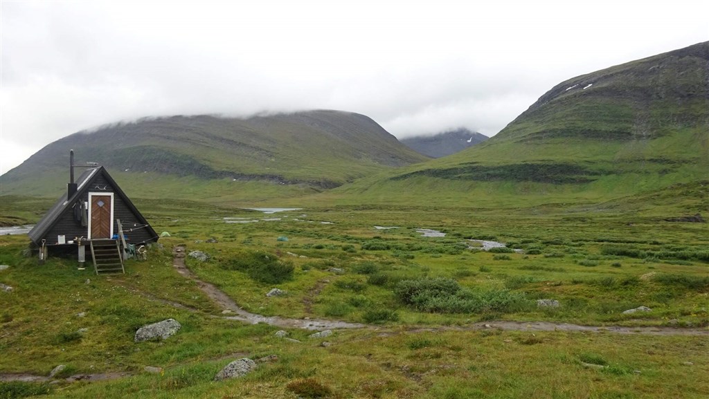 Vyrazíme rozervanou krajinou a taky trochu do kopce na chatu Alesjaure (790 m). Zde okusíme saunu a můžeme dokoupit potraviny. (20 km)