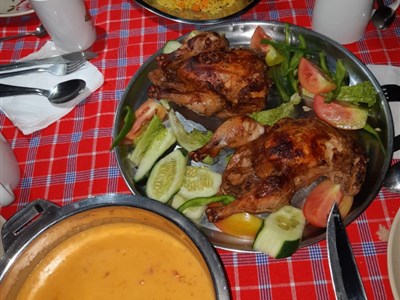Na safari budeme mít plnou penzi, obědy občas formou pikniku – balíček či uvařený oběd v nádobách, večeře vždy teplé, snídaně vždy teplé.Ostatní strava mimo Safari ve vlastní režii. Ceny v Tanzanii i na Zanzibaru jsou absolutně srovnatelné s našimi. Oběd v restauraci vychází kolem 8-10 USD, večeře v luxusní restauraci kolem 20 USD. Na Paje je trochu levněji, ceny jídel od 150Kč do 250Kč. Nápoje – voda 20Kč, pivo 50Kč, víno 80Kč, koktejl 120Kč. Typickým jídlem, na kterém si můžete v Tanzanii pochutnat, jsou např. banánové polévky, chipsi mayai (hranolky ve vaječné omeletě), skvělá tanzánská rýže s curry, čapátí, ryby a především spousta druhů dozrálého ovoce jako mango, avokádo, ananas aj. Na Zanzibaru se pak setkáme např. s oblíbeným nayna choma (kozí maso na grilu), supu ya kuku (silný kuřecí vývar se zeleninou) a řadou 100% ovocných džusů např. z manga, banánů, pomerančů.
